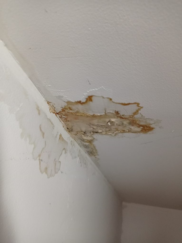 - Zacieki i plamy na skosach lub suficie.