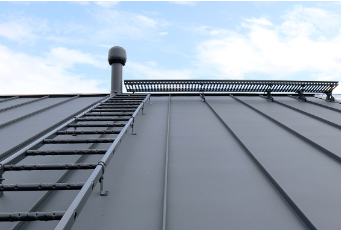 - na dachach o spadku ponad 25% oraz na dachach pokrytych materiałami łamliwymi należy wykonać stałe dojścia do kominów, urządzeń technicznych oraz anten radiowych i telewizyjnych.